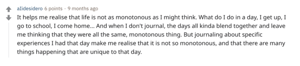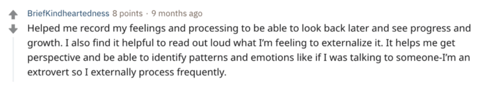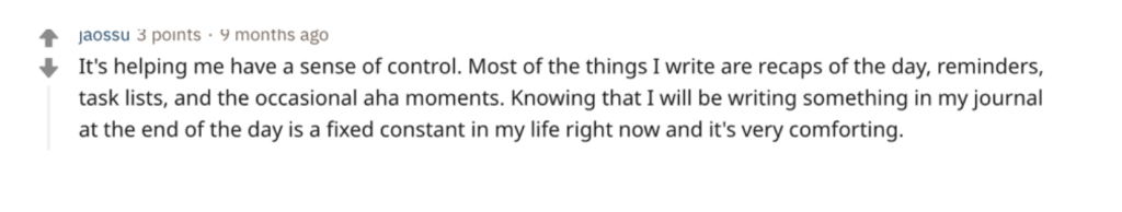 Here are some screenshots from reddit users who share their thoughts on how journaling changed their lives: